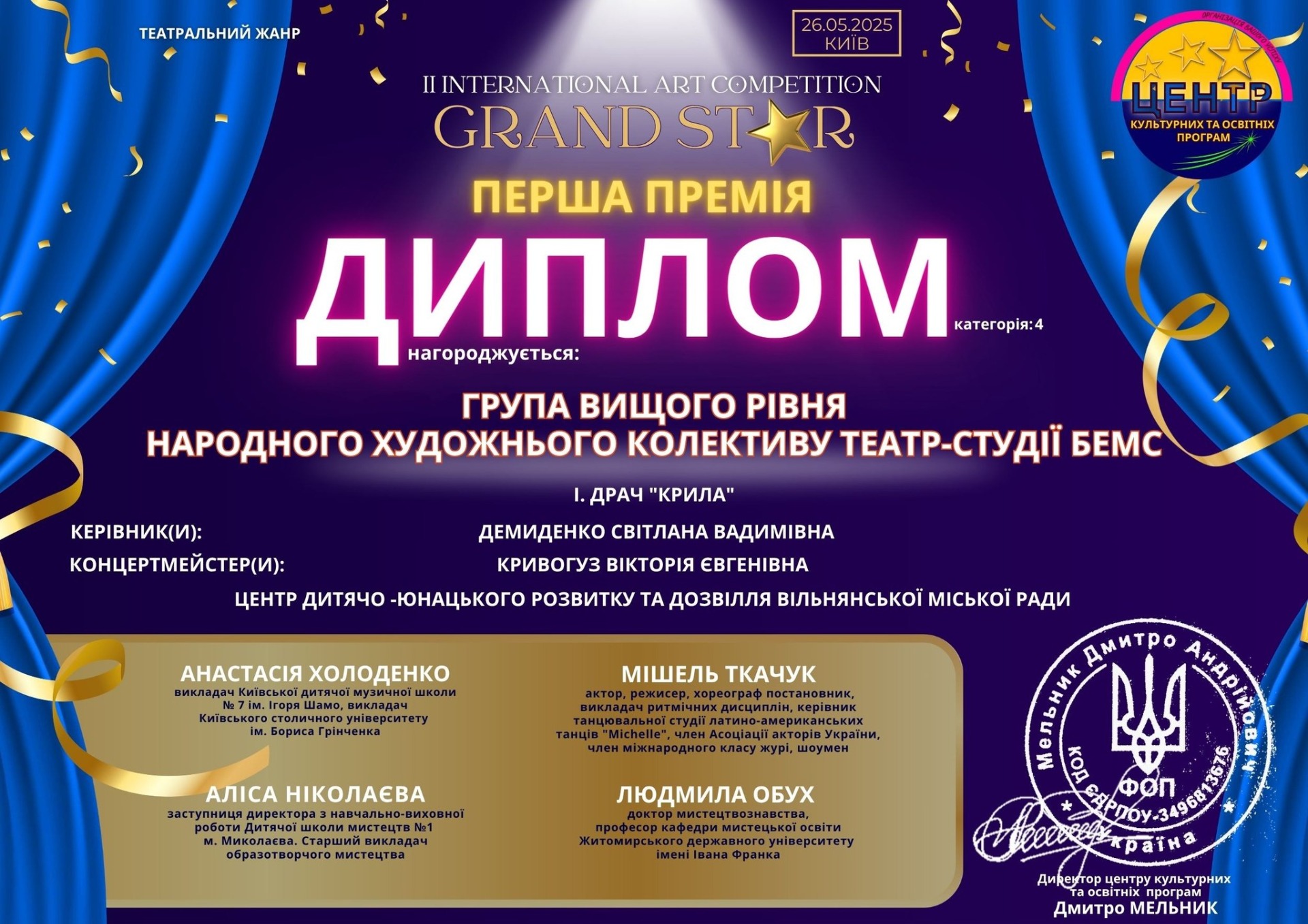 Вітаємо групу вищого рівня з черговою перемогою, ПЕРША ПРЕМІЯ на міжнародному багатожанровому фестивалі мистецтв