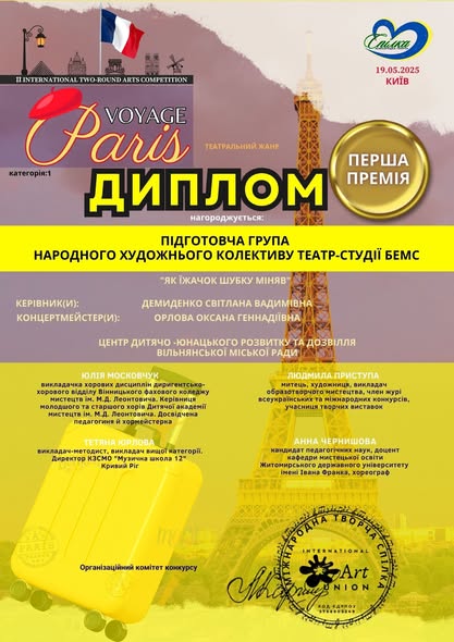 Знайомтеся з переможцями міжнародного конкурсу "PARIS VOYAGE" ( 1 МІСЦЕ)