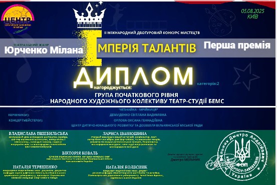 День Незалежності України група початкового рівня Народного художнього колективу театр-студії БЕМс зустрічає перемогоюна Міжнародному фестивалі в жанрі " Театральне мистецтво"Вітаємо діток та батьків! Пишаємося їхніми досягненнями!Вперед жо нових робіт та перемог!